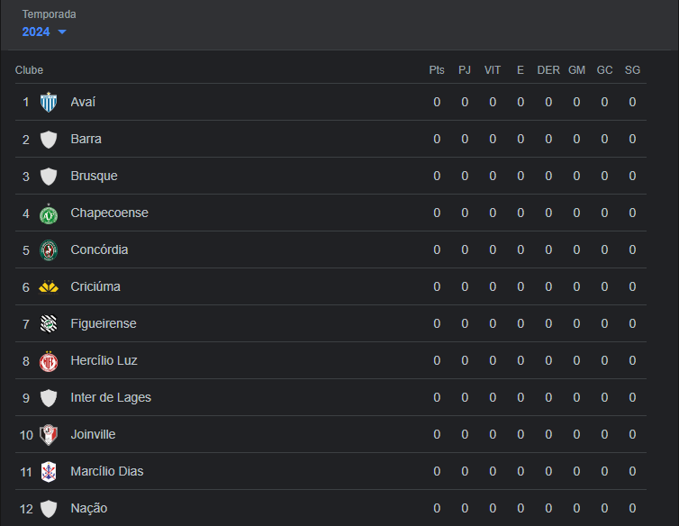 Veja os 12 times que disputarão o Catarinense de 2024: