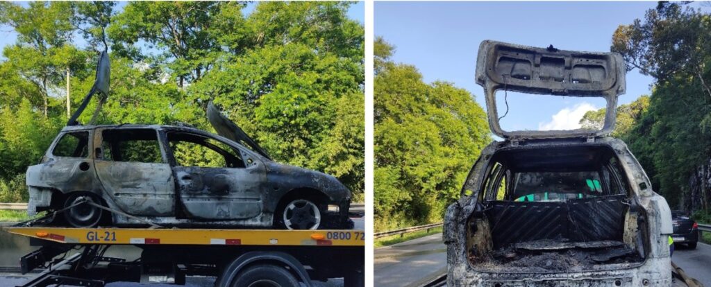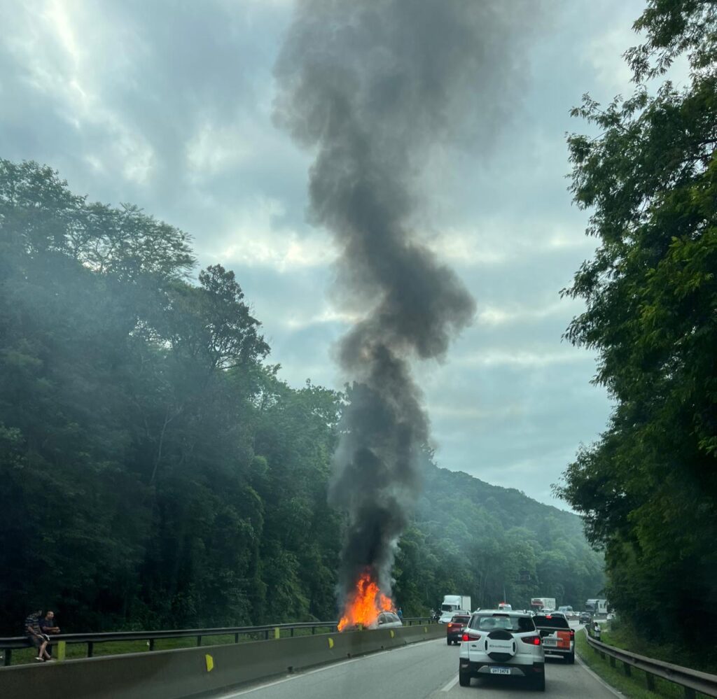 Um automóvel Peugeot pegou fogo no km 234 da BR-101, em Palhoça. sentido norte. O incêndio ocorreu por volta das 7h50.