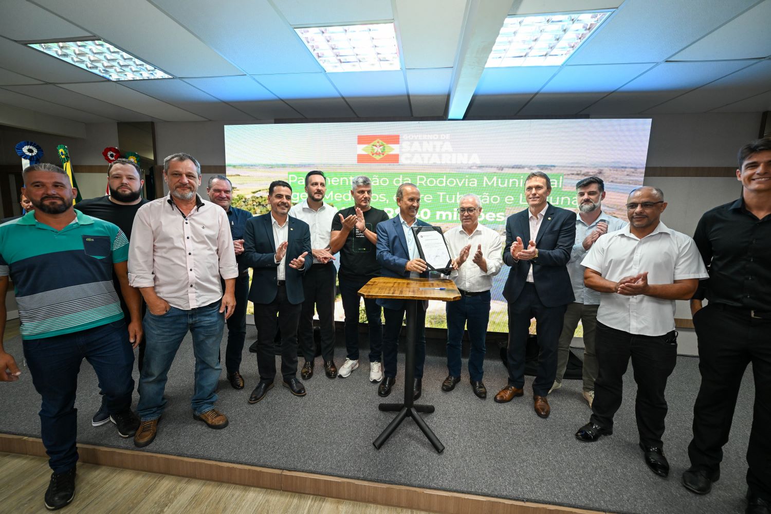 A rodovia municipal Aggeu Medeiros, que faz ligação entre Tubarão e Laguna, vai receber o investimento de R$ 40 milhões para a pavimentação. Outros R$ 3,46 milhões vão ser destinados para pavimentação de ruas de Tubarão. A cidade também foi contemplada com outros R$ 450 mil para reforma e ampliação do Centro de Educação Infantil Divina Providência e outros R$ 600 mil para melhorias no Posto de Saúde do Morro do Becker.