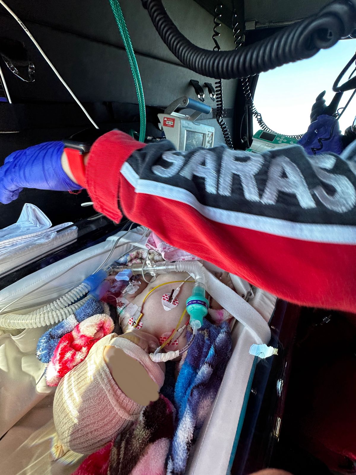 No entanto, logo em seguida mais desafios estavam reservados aos profissionais. Pouco tempo depois, por volta das 12h20, o Samu solicitou apoio do Saer/Sarasul para a transferência de uma bebê de apenas 3 meses, que enfrentava uma batalha pela vida no Hospital Materno Infantil Santa Catarina. A pequena lutava contra a insuficiência respiratória decorrente de uma bronquiolite, e sua única esperança residia em um leito de UTI, indisponível na instituição.