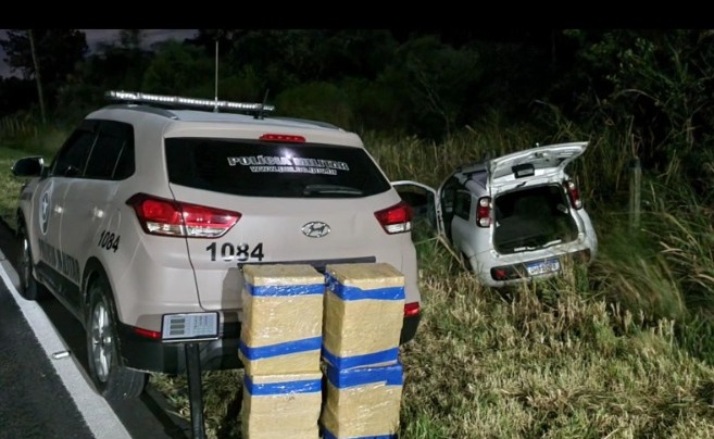 O motorista fugiu pelo matagal e não foi localizado. No carro foram encontrados um celular, uma balança de precisão e pacotes embalados, que totalizaram a apreensão de 100 quilos de maconha. O veículo foi removido e os itens apreendidos foram encaminhados à Delegacia de Polícia Civil, à disposição da justiça.