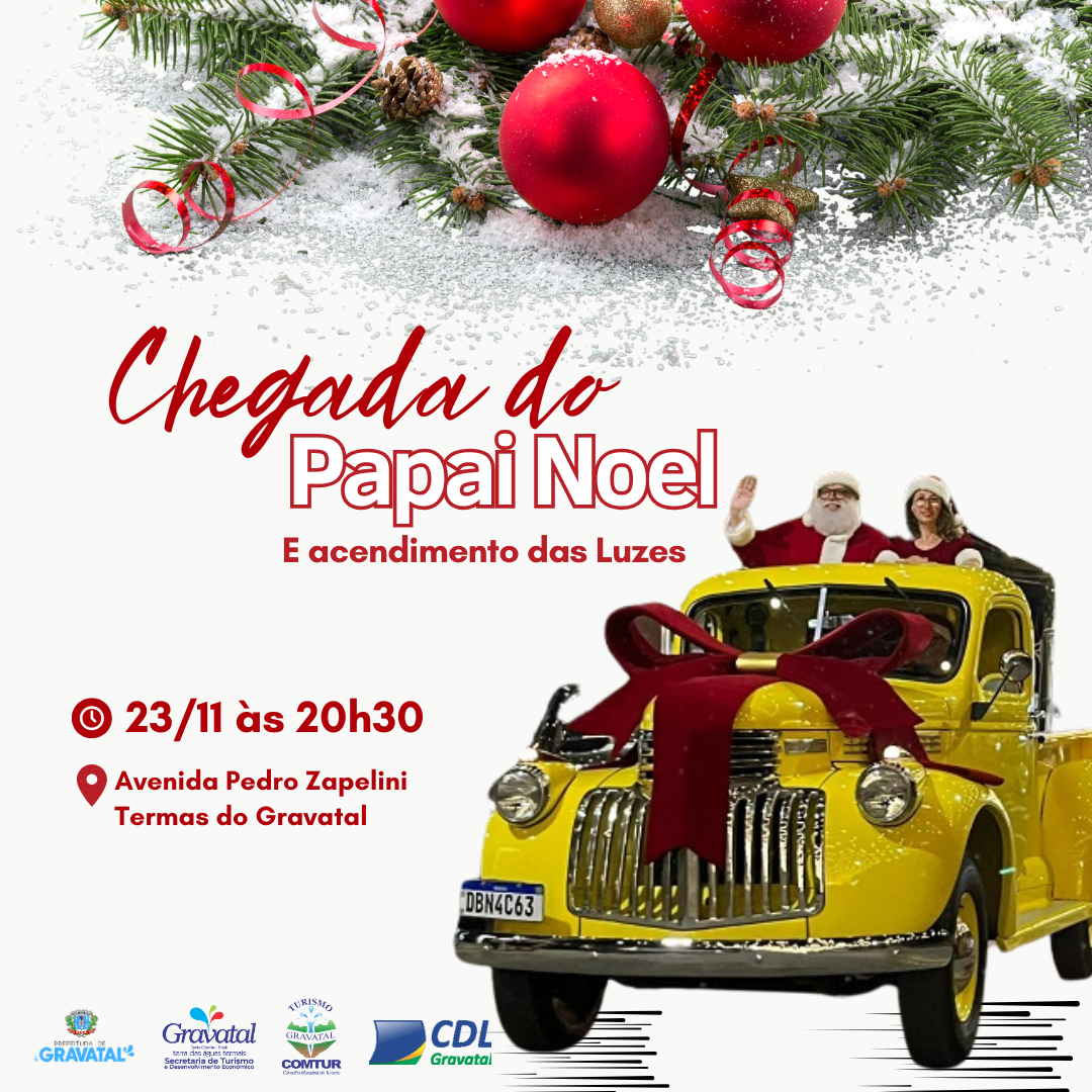 Gravatal vai brilhar ainda mais neste sábado (23), prometendo encantar moradores e visitantes com a chegada de Papai Noel, no bairro Termas. Às 20h30, o Bom Velhinho, em meio a um cortejo festivo de carros antigos, fará sua entrada pela avenida Pedro Zapelini, marcando o início das festividades natalinas do Município e também das comemorações dos 63 anos de emancipação.