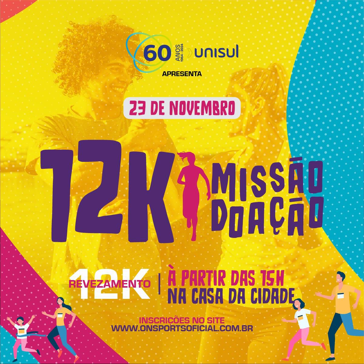 Tubarão será palco de um evento esportivo e solidário neste sábado, com a realização da Corrida 12K Missão Doação. A iniciativa, promovida pelo Fórum das Entidades Filantrópicas, Clube de Corredores de Rua de Tubarão (Cortuba), Inoversasul e CDL, tem como objetivo arrecadar fundos para 14 instituições assistenciais da região.