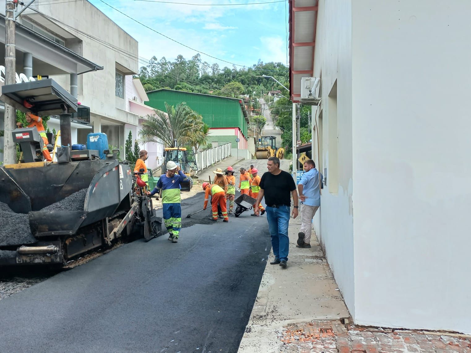 Esta semana, a Prefeitura iniciou uma série de pavimentações asfálticas nas comunidades. Uma das obras está sendo realizada na rua ao lado da nova sede da Câmara de Vereadores.