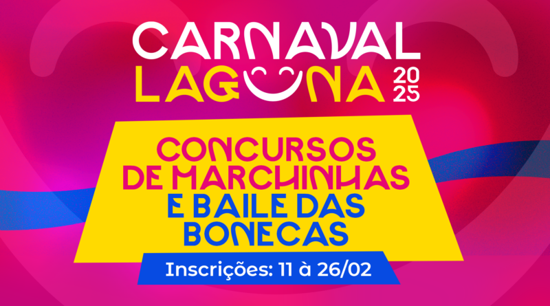 A partir desta terça-feira (11) estão abertas as inscrições para o Concurso de Marchinhas de Carnaval e Concurso da Boneca, Musa e Drag Queen da Praça. A escolha e as premiações acontecerão no dia 27 de fevereiro, no tradicional Baile das Bonecas, evento que abre oficialmente o Carnaval 2025, em Laguna.