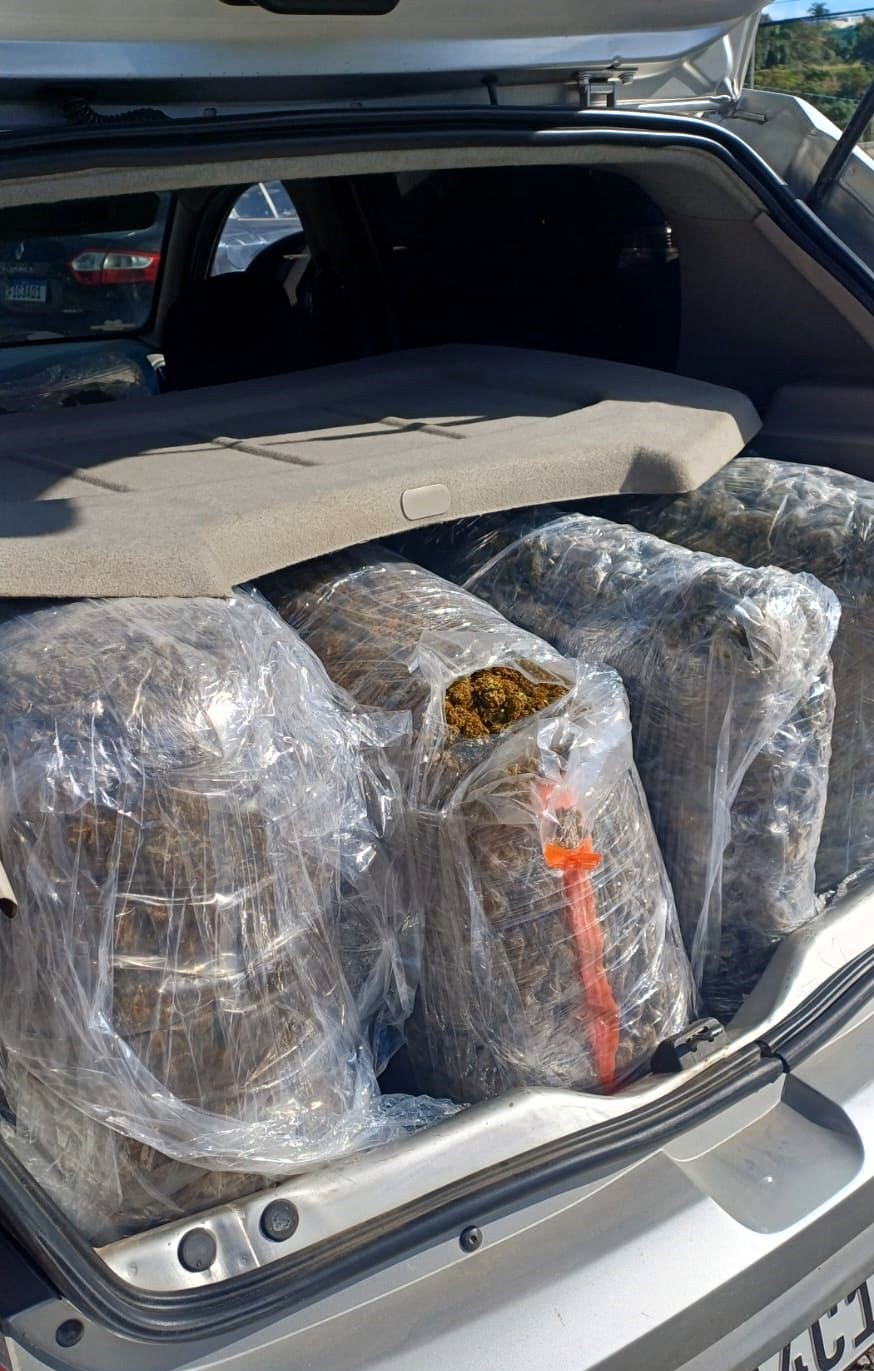 O entorpecente foi encontrado no porta-malas e no banco traseiro do veículo, escondido sob uma manta. Entre as drogas apreendidas estavam 40 quilos de skunk — uma variedade mais potente de maconha — e um comprimido de metilenodioximetanfetamina (MDMA), conhecido como ecstasy.