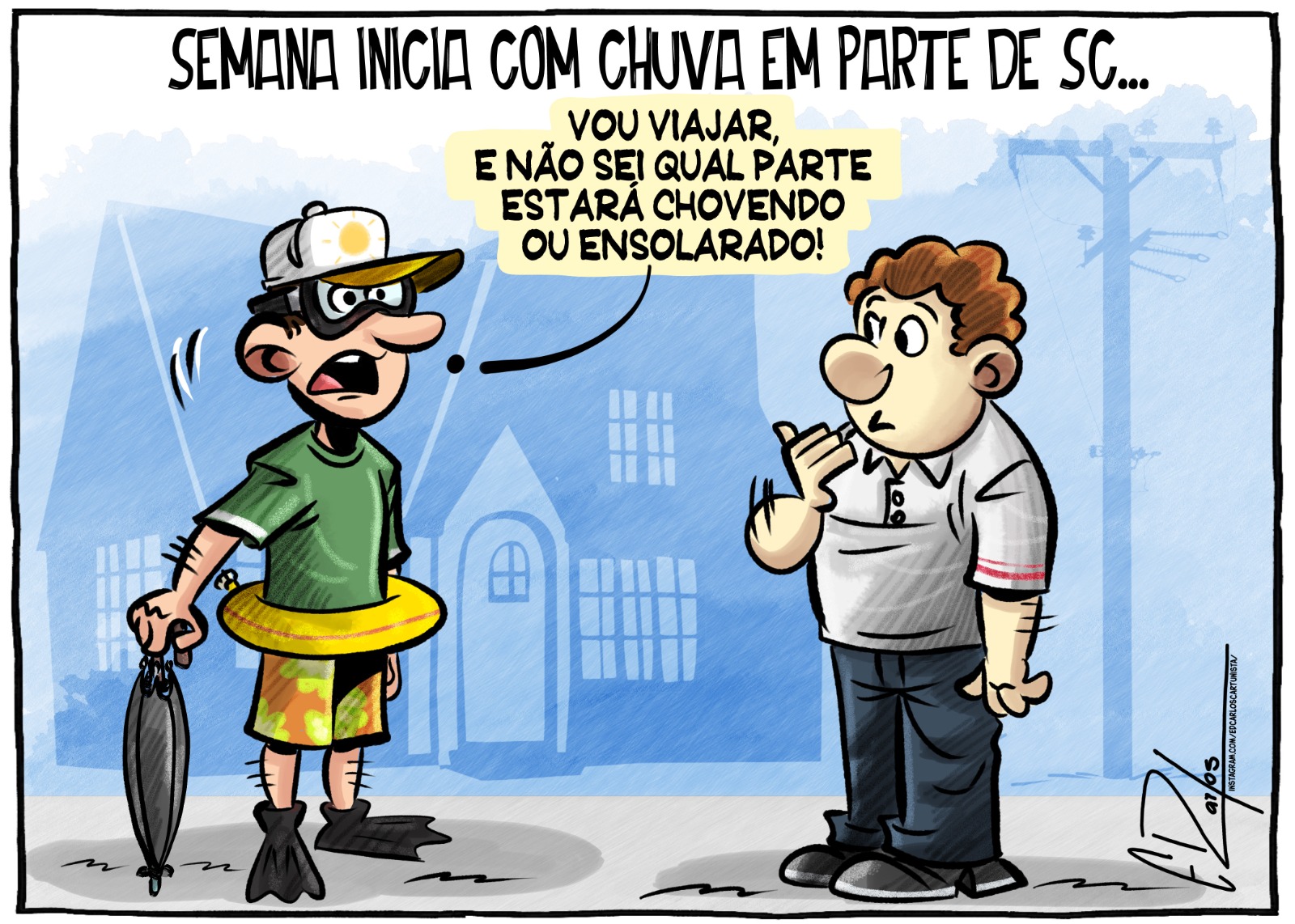 Amanhã segunda-feira (17), uma semana começa com chuva em SC, mais persistente e com maiores volumes na madrugada e pela manhã, quando é mais favorável a condição de temporais. Ao longo do dia, chuva mais isolada no estado. As temperaturas diminuem no estado, devido à cobertura de nuvens. Os ventos ficam de sudoeste a sul, com rajadas de fraco a moderado.