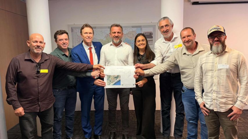 A reunião de apresentação e alinhamento contou com a participação do secretário de Infraestrutura, Jerry Comper, do deputado estadual Volnei Weber (MDB), dos vereadores César Damiani (Novo), Laudir Vargas (MDB) e Mauro Ferreira (MDB), além do presidente da Associação de Moradores do Arroio Corrente, Richardson Souza.