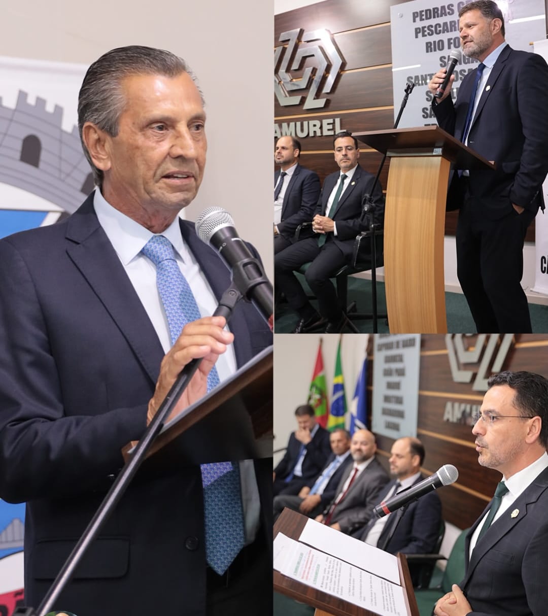 A solenidade de transmissão de cargo ocorreu no final da tarde desta quinta-feira (01/01), na sede da AMUREL (Associação de Municípios da Região de Laguna).
