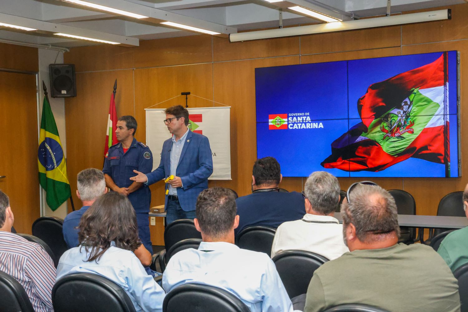 Nós chamamos essa reunião para o projeto Pesca Bem Segura com representantes das prefeituras do Litoral catarinense onde tem embarcações com licença de pesca até 15 AB, que é o objeto do nosso projeto, para dar um treinamento junto com o Corpo de Bombeiros e a empresa que fornece o equipamento. E para eles se inscreverem, pois o repasse dos equipamentos será para as prefeituras, que vão fazer o repasse para os pescadores. Tudo isso é uma preocupação muito grande do governo Jorginho Mello com a integridade do pescador catarinense, por isso estamos atuando cada vez mais em ideias que garantam toda a segurança para quem vive do mar em nosso estado”, explicou o secretário executivo de Aquicultura e Pesca, Tiago Frigo.