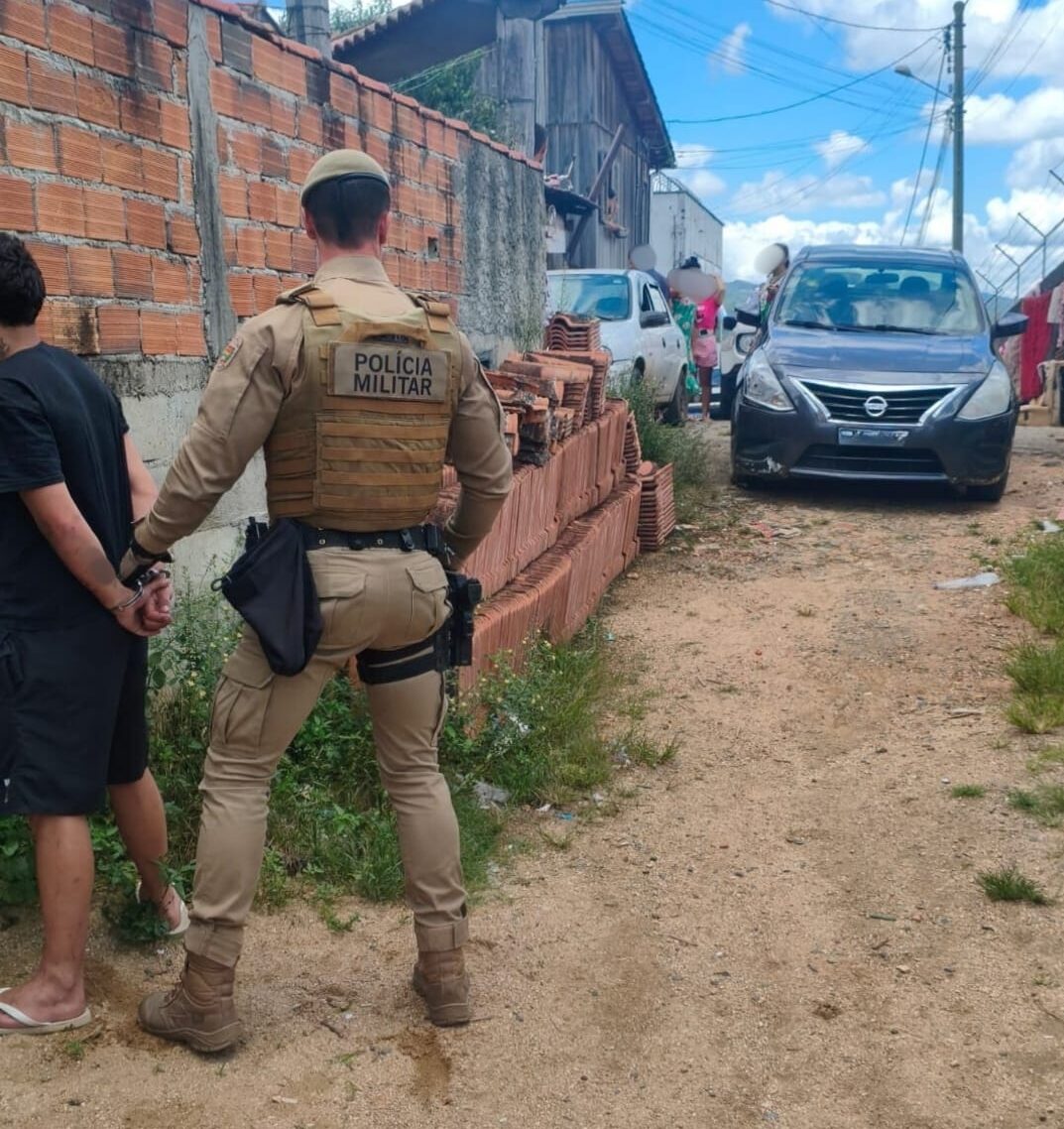 Horas depois, durante patrulhamento na Rodovia SC-370, os policiais avistaram o automóvel roubado. Ao confirmarem a placa, iniciaram o acompanhamento. Os suspeitos abandonaram o carro ao final de uma rua no bairro Rio Bonito e tentaram fugir a pé, se escondendo em residências próximas.