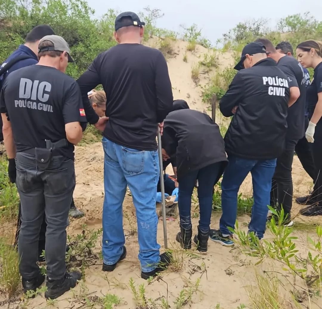 As equipes da Divisão de Investigação Criminal (DIC) de Araranguá e Criciúma, com o apoio da Polícia Científica e funcionários da Prefeitura de Balneário Rincão, realizaram as diligências que levaram à descoberta do corpo, que, a princípio, é do sexo feminino.