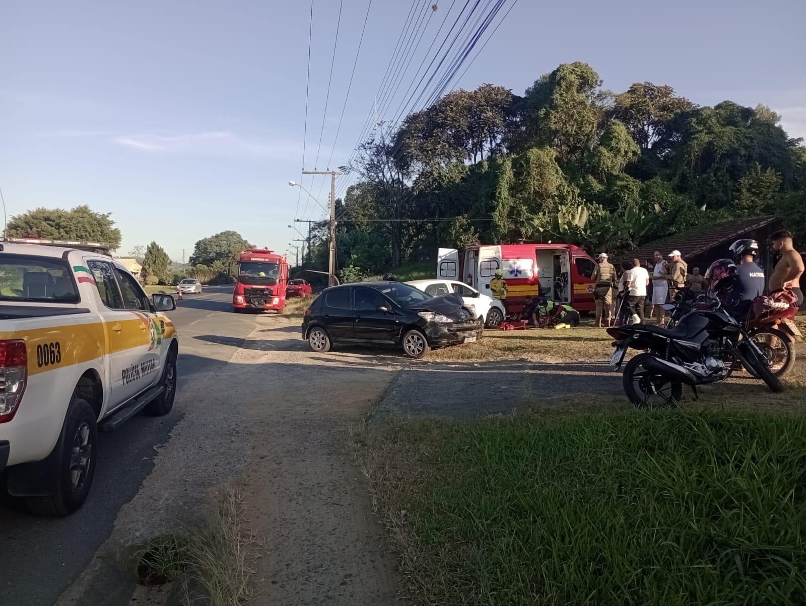 Um dos ocupantes do Peugeot, que estava caminhando de um lado para o outro, e relatado não se sentir bem, também recebeu assistência médica e foi transportado ao Hospital de Armazém pelo ASU-548. A PRE ocorreu no local para registrar a ocorrência e realizou as devidas orientações.